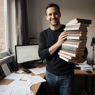 Zůstal jsem na něho chvíli zírat a přemýšlel jsem. Mám mu něco vykládat o tom, jak je náročné, vymyslet zajímavý příběh, který by zaujal a byl originální? Jak se každou noc probouzím a několik hodin nemohu usnout, protože mě pronásledují postavy z příběhu a chtějí po mně vymyslet nějakou smysluplnou zápletku, a také tomu odpovídající vtipný dialog? Jaký je problém, když si tu správnou formulaci hned v noci nezapíšu a ráno si ji marně snažím vybavit? Mám mu povědět o tom, jaký je to stres, když už něco napíšu a dám to někomu přečíst? Jestli se dozvím něco jako ‚hoď to do koše a začni znovu‘, ‘no jde to, ale…‘ anebo ‚je to perfektní, takhle pokračuj‘. Nebo jak moc velkou mám depku, když najednou pár dní mám v hlavě prázdno a nevím jak dál. Pak taky, jaký dostanu za knihu ‚balík‘ peněz…